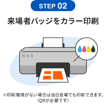 なお、印刷環境のある方は、「来場者バッジ」をカラー印刷して当日会場にお持ちいただくとスムーズにご入場いただけます。